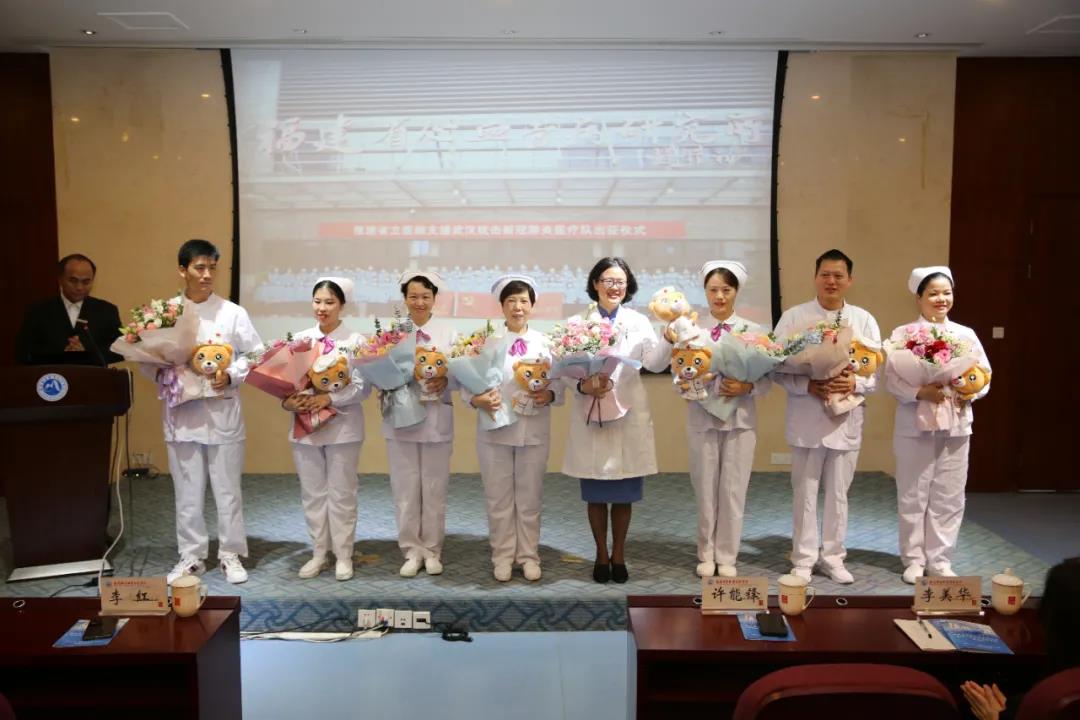 學(xué)生代表還為報(bào)告團(tuán)嘉賓送上鮮花和護(hù)士裝扮卡通熊表示敬意。