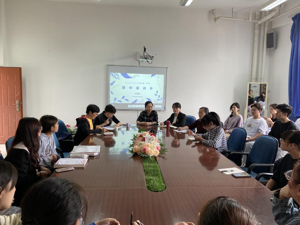 1029日上午,學院督導徐軼彥、謝雪燕兩位老師蒞臨護理系,進行2020-2021學年第一學期期中座談會,座談會由護理系主任龔海蓉主持,副主任王憲寧、教學辦主任茹靜以及護理系各班級學生代表參加。