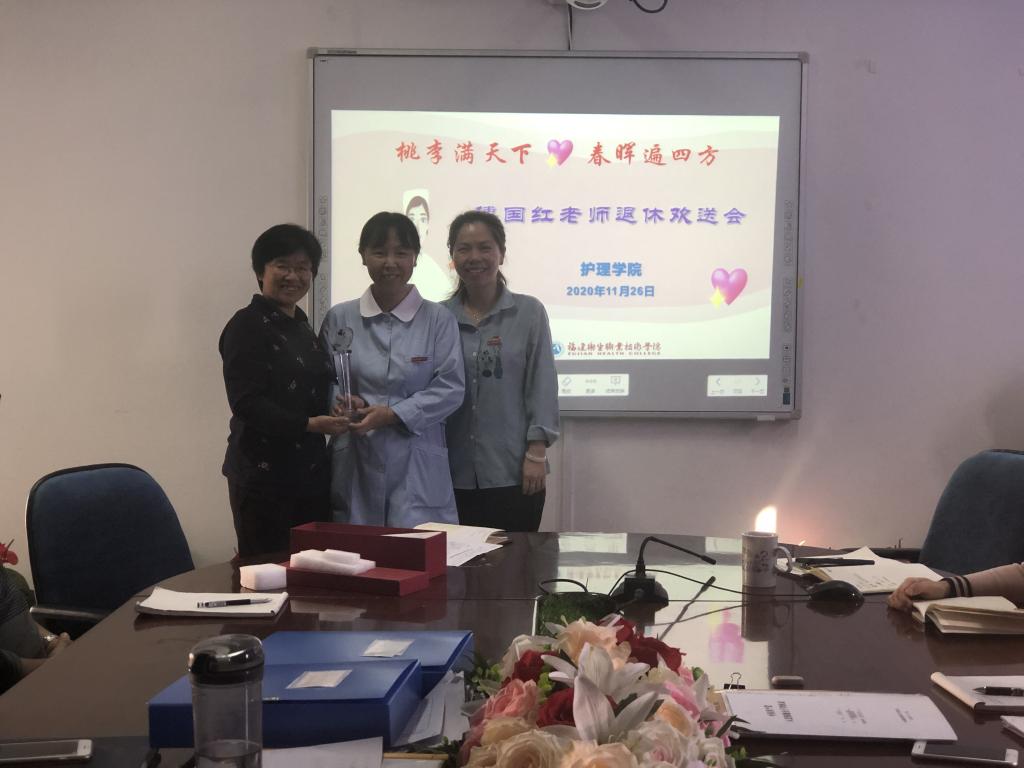 2020年11月26日下午護(hù)理學(xué)院為傅國紅老師舉辦了退休歡送會(huì)。護(hù)理學(xué)院領(lǐng)導(dǎo)、工會(huì)小組成員、全體教職工參加歡送會(huì)。離別之際,依依不舍,道不盡的千言萬語。