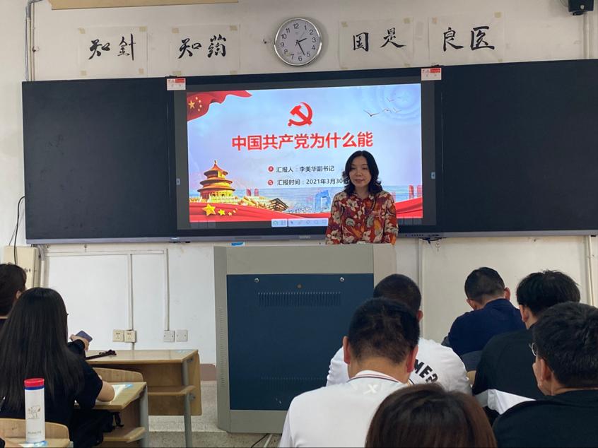 在中國(guó)共產(chǎn)黨迎來百年華誕之際,為落實(shí)好習(xí)近平總書記在黨史學(xué)習(xí)教育動(dòng)員大會(huì)上的重要講話精神,在全校廣泛開展黨史宣傳教育,普及黨史知識(shí),推動(dòng)黨史學(xué)習(xí)教育深入群眾、深入基層、深入人心,引導(dǎo)青年學(xué)生強(qiáng)化使命擔(dān)當(dāng)、堅(jiān)定理想信念、厚植家國(guó)情懷,3月29日,校黨委副書記李美華走進(jìn)聯(lián)系班級(jí),圍繞“中國(guó)共產(chǎn)黨為什么能”為同學(xué)們上開學(xué)思政第一課。