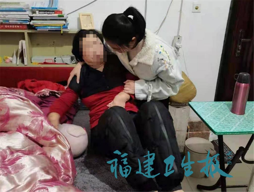 為了更好地照顧媽媽,王林慧特意報考福建衛(wèi)生職業(yè)學(xué)院學(xué)習(xí)護(hù)理專業(yè),還把母親接到學(xué)校附近,每天早早起床,趕在學(xué)校上課之前,扶媽媽起來,給她穿衣、梳頭、洗臉、刷牙、倒水喂藥、買早飯。一放學(xué),王林慧從食堂打了飯,匆匆往家趕。一到家,和媽媽一起吃過飯,收拾妥當(dāng),給媽媽按摩后,再拿出課本學(xué)習(xí)。