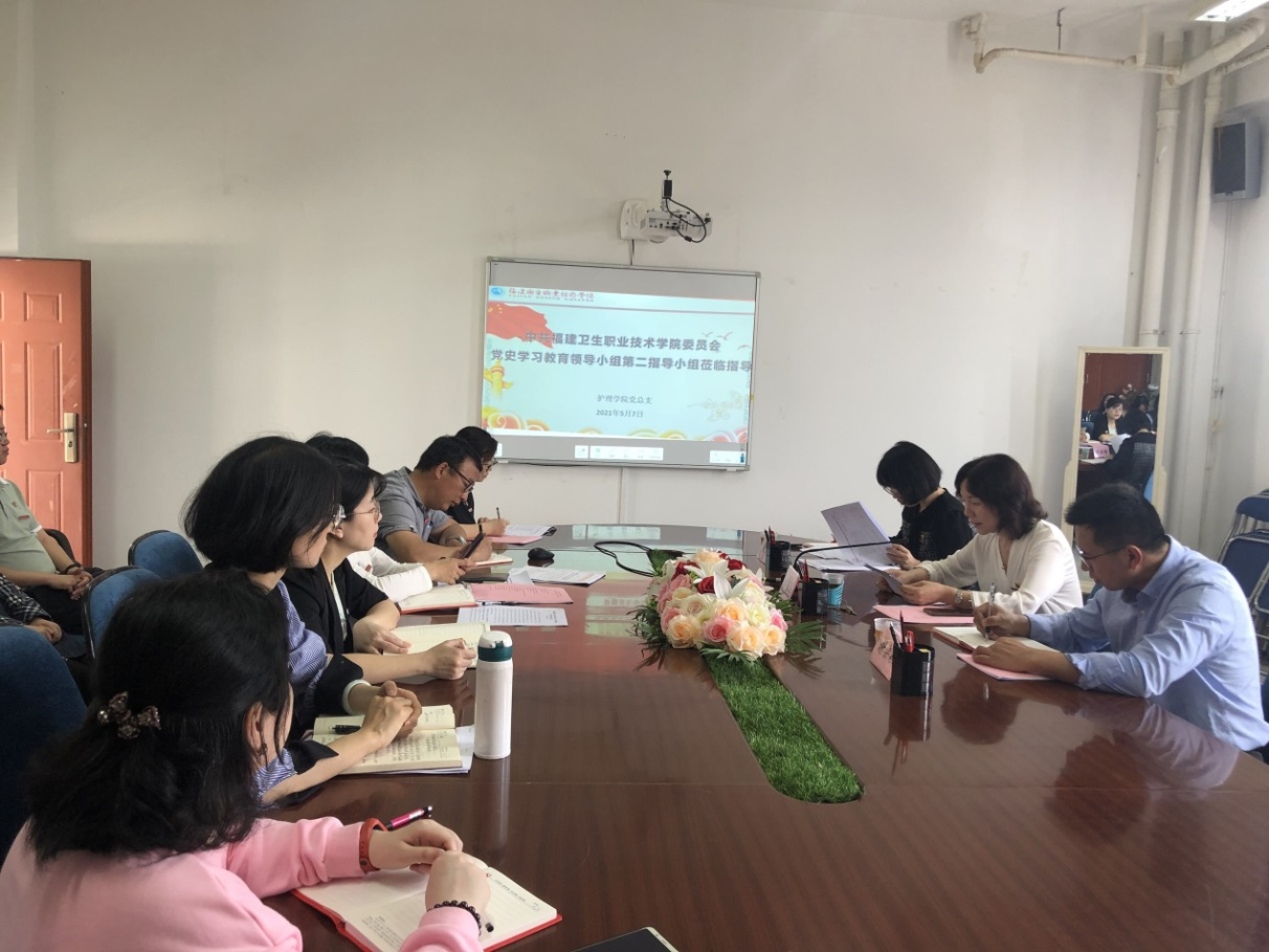2021年5月7日上午,校黨史學(xué)習(xí)教育指導(dǎo)二組蒞臨護(hù)理學(xué)院指導(dǎo)工作,指導(dǎo)小組成員校黨委副書(shū)記李美華、組織統(tǒng)戰(zhàn)部副部長(zhǎng)謝宗穎、藥學(xué)院黨總支專(zhuān)職組織員黃嵩梅一行與護(hù)理學(xué)院黨總支黨務(wù)干部參加了會(huì)議,會(huì)議由護(hù)理學(xué)院黨總支書(shū)記謝濤主持。