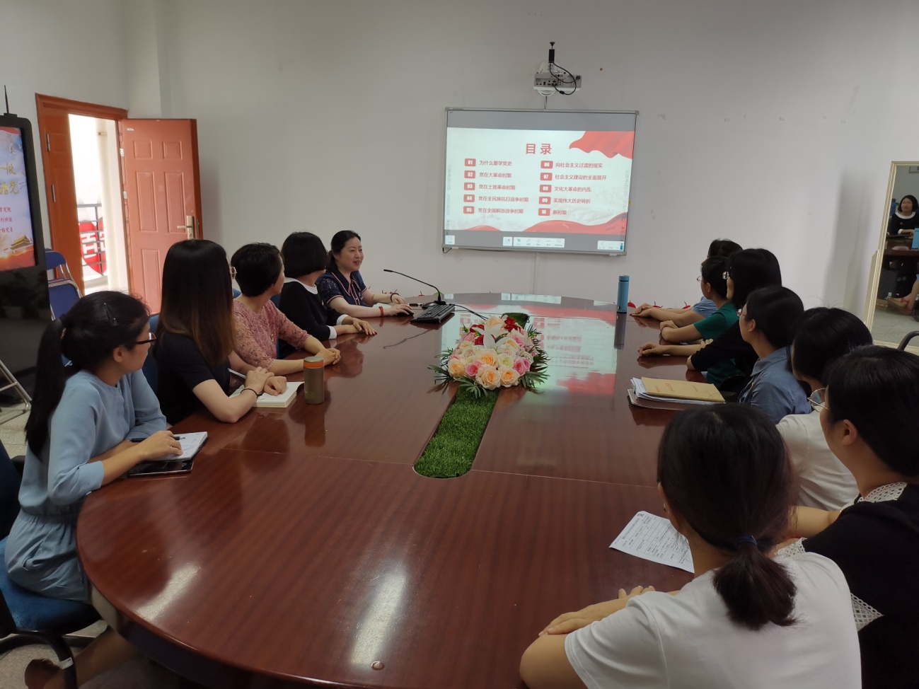 洪霞從為什么要學黨史、黨在不同時期的大事件、黨偉大的歷史轉(zhuǎn)折及新時期的偉大成就和展望等四個方面展示我們偉大的中國共產(chǎn)黨的百年風華和成就,充分顯示了我們黨的先進性。歷史是最好的教科書,通過本次黨課學習,支部黨員教師們紛紛表示,更深入地走進了紅色歷史,更加切實了解紅色歷史文化,也堅定愛黨、愛國的自信。接過歷史交接棒,我們應珍惜這份榮光,用強有力的臂膀擔起民族復興的時代重任。