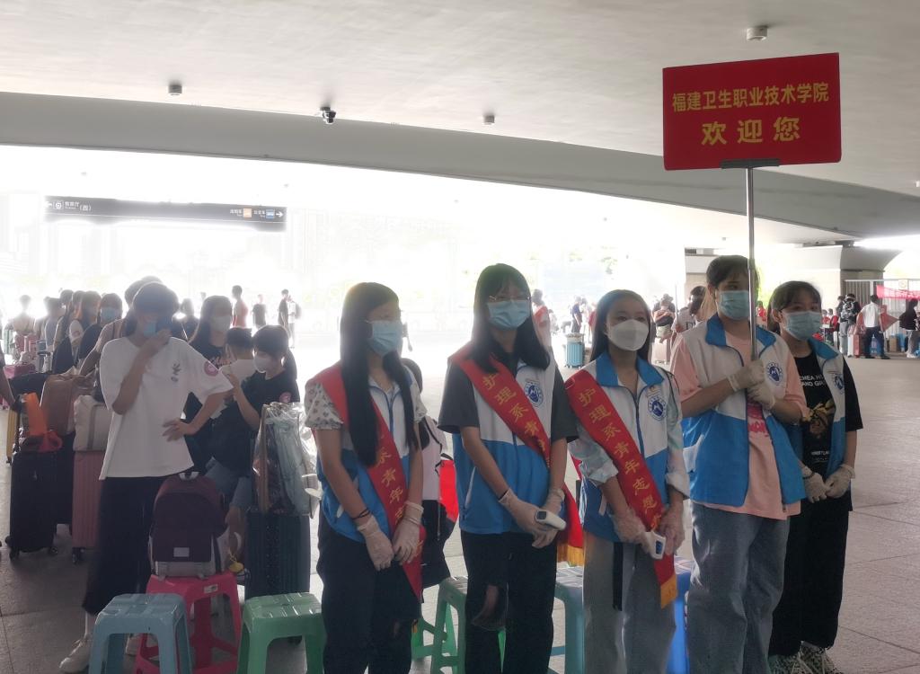 迎新當(dāng)天,護(hù)理學(xué)院老師們和學(xué)生志愿者早早地在火車站開展接站服務(wù),學(xué)院還安排了校內(nèi)接駁車,幫助入校的新生搬運(yùn)行李,讓不能陪同的父母安心。
