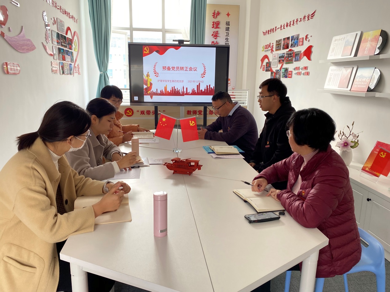 2021年12月9日,護理學院學生第四黨支部召開預備黨員轉正大會,大會討論并審議了預備黨員馬揚同志轉為中共正式黨員事宜。護理學院學生第四黨支部全體黨員參加了本次會議。會議由支部書記彭琰同志主持。
