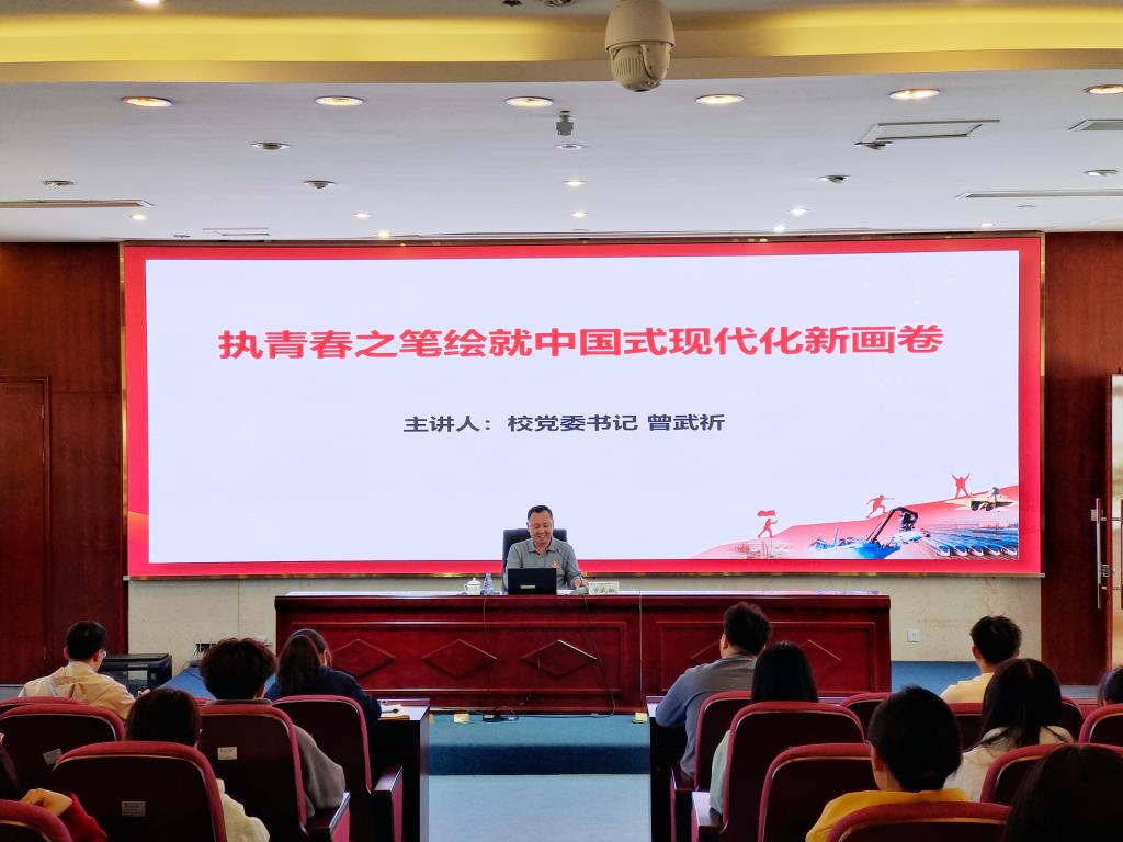 曾武祈以“執(zhí)青春之筆繪就中國式現(xiàn)代化新畫卷”為題,從歷史經(jīng)驗、制度優(yōu)勢、文明形態(tài)等維度出發(fā),向師生們深刻解讀了黨的二十大明確提出并系統(tǒng)闡述的中國式現(xiàn)代化理論。