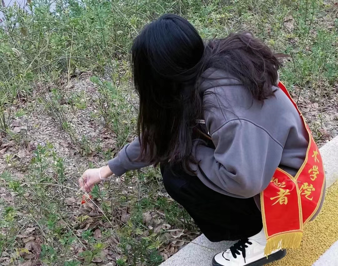 綠水青山,你我守護。3月4日清晨,護理學院組織同學前往旗山湖公園開展環(huán)境保護工作。志愿者們身披綬帶,攜帶清理工具,分區(qū)域?qū)ζ焐胶珗@周圍進行路面垃圾的清理。在清理之余,志愿者們看到上下樓梯腿腳不便的老人主動上前攙扶。遇見獨自出游的老人熱情地上前與其問好,詢問身體健康情況并對游客進行了環(huán)保知識普及、勸導不文明行為。志愿者們穿梭在公園中,閃爍著耀眼的光芒,裝點著青春的色彩。
