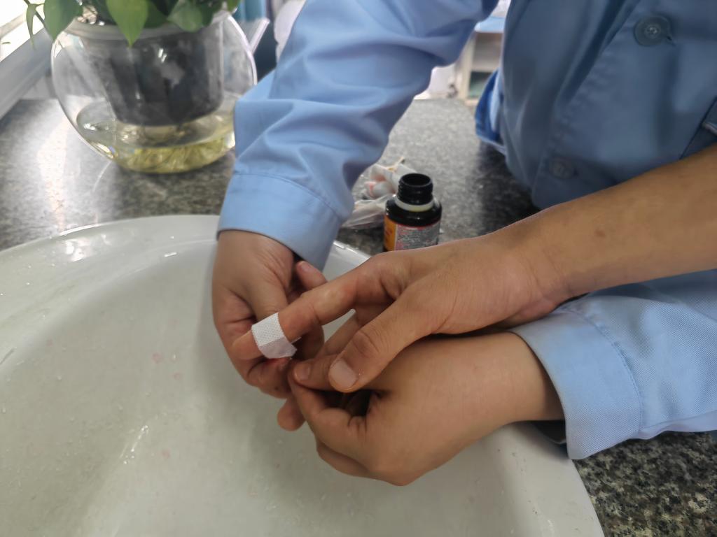 本次演練分為銳器傷應(yīng)急處理演練、應(yīng)急逃生演練(消防、地震)兩個(gè)部分進(jìn)行。第一部分,銳器傷應(yīng)急處理演練。集中講授易引起銳器傷發(fā)生的危險(xiǎn)行為,告知學(xué)生發(fā)生銳器傷不要驚慌,聽(tīng)從指揮,配合老師完成應(yīng)急處理流程,各位置工作人員維持現(xiàn)場(chǎng)秩序,確保實(shí)訓(xùn)室無(wú)發(fā)生其他安全事件。