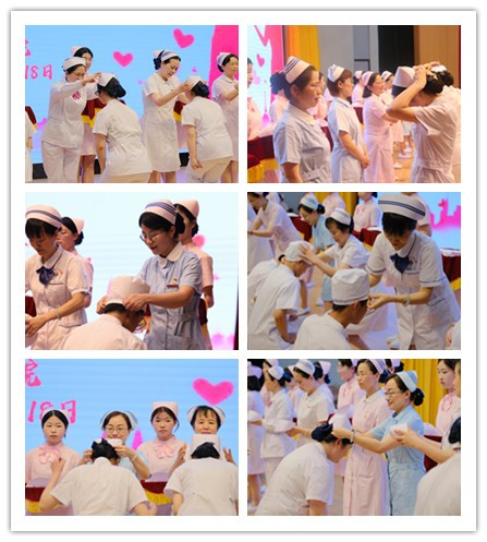 在莊嚴(yán)而優(yōu)美的樂曲聲中,省市屬醫(yī)院護理前輩以及護理學(xué)院的教師代表為護理學(xué)子戴上圣潔的燕尾帽,同學(xué)們虔誠地接受授帽,前輩的殷殷囑托為其傾注力量。神圣而莊嚴(yán)的儀式標(biāo)志著他們即將由一名在校生轉(zhuǎn)變?yōu)橐幻R床實習(xí)生,身份不同、初心不變、信念不移。