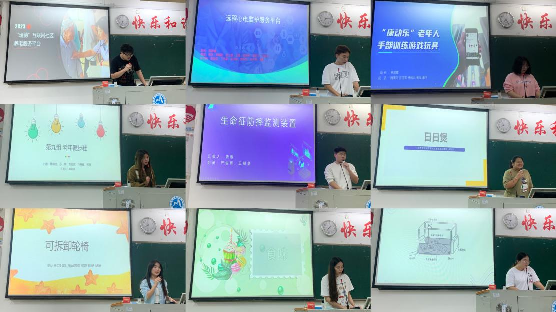 本次比賽參賽小組按照賽前抽簽順序依次上臺進行為時10分鐘的針對老年人的產品項目展示,分別從項目背景分析,項目的開發(fā)與意義、競爭分析、經營方式、營銷策略、風險管理等多方面進行展示,每個團隊都以獨特的思維視角展示了當代大學生的創(chuàng)新精神和團隊風采。