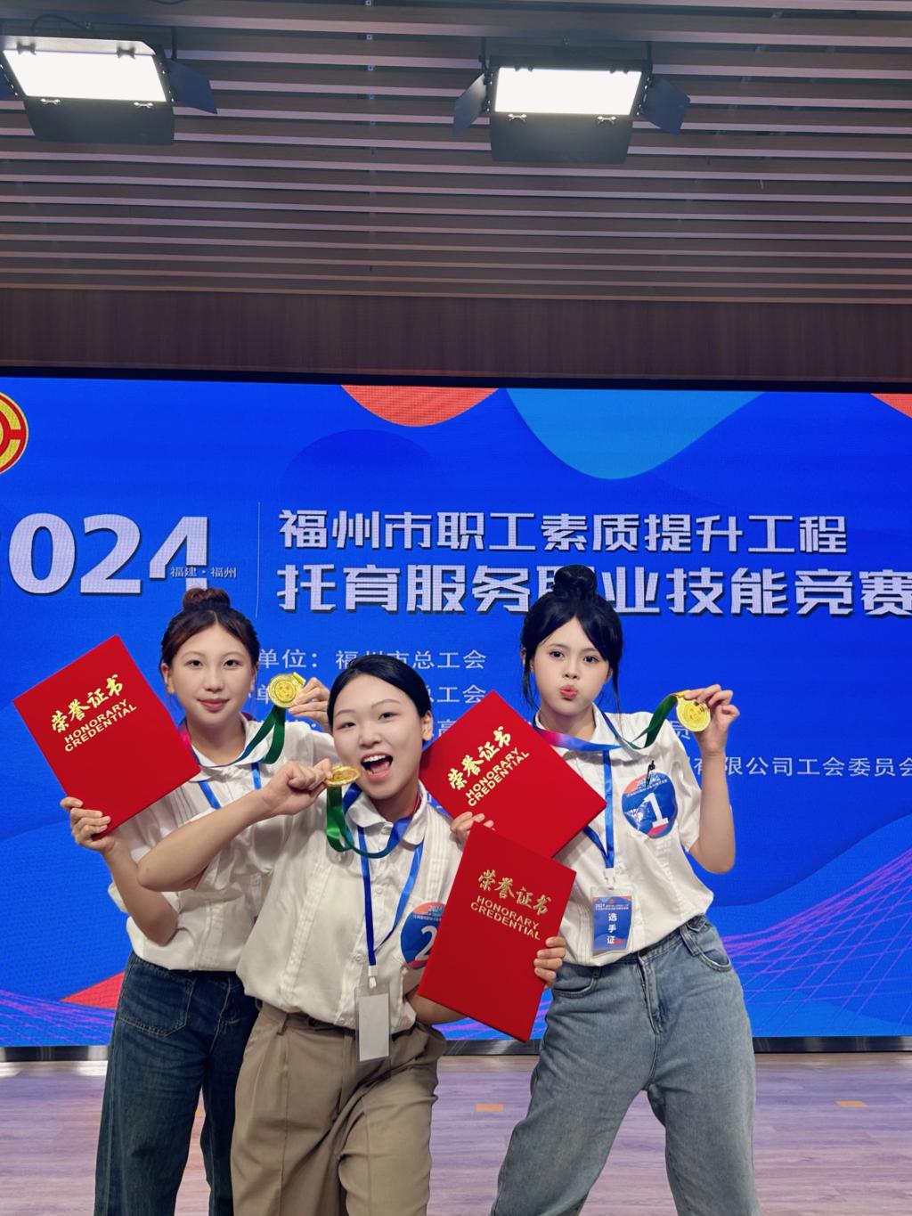 三位選手在此前由福州市總工會主辦的“福州市職工素質(zhì)提升工程——托育服務(wù)職業(yè)技能競賽選拔賽”中脫穎而出,以團(tuán)體第一名的成績代表福州市參加此次省賽。