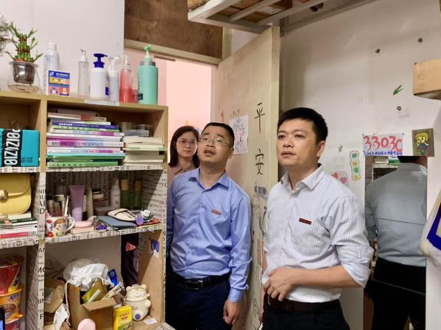 在走訪過程中,副校長周雄與同學(xué)們親切交談,細(xì)致詢問日常起居、學(xué)業(yè)進展及未來規(guī)劃。他強調(diào),學(xué)校高度重視“一站式”學(xué)生社區(qū)建設(shè),將在暑期優(yōu)先升級改善部分學(xué)生宿舍生活設(shè)施,努力為學(xué)生提供更好的學(xué)習(xí)生活環(huán)境。同時,他要求,護理學(xué)院要以“一站式”學(xué)生社區(qū)建設(shè)為契機,進一步完善主題宿舍創(chuàng)建機制,暢通學(xué)生意見反饋機制,把社區(qū)服務(wù)做實做細(xì)。