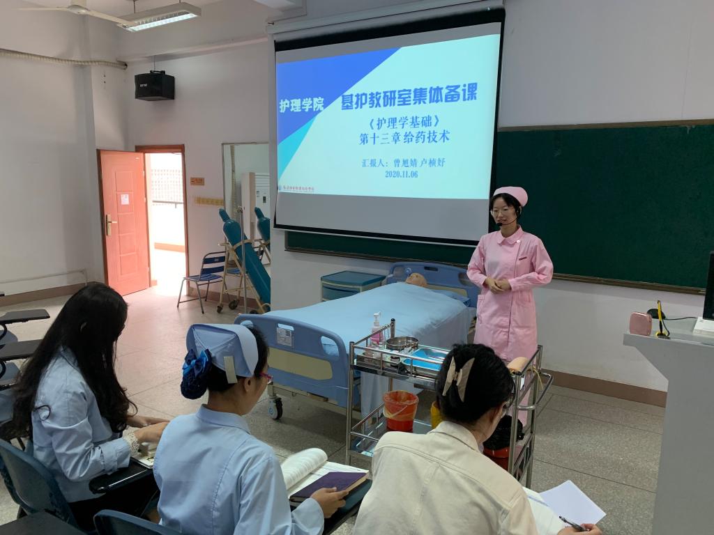為了進(jìn)一步提高教師的備課效果和教學(xué)水平,充分運(yùn)用信息化現(xiàn)代技術(shù)提高基礎(chǔ)護(hù)理教學(xué)質(zhì)量,發(fā)揮黨員先鋒模范作用,2020年11月06日上午10點(diǎn),護(hù)理學(xué)院基礎(chǔ)護(hù)理教研室組織教研室全體教師暨護(hù)理學(xué)院第一黨支部黨員教師在護(hù)理學(xué)院206教室開(kāi)展了《給藥技術(shù)》集體備課活動(dòng)。