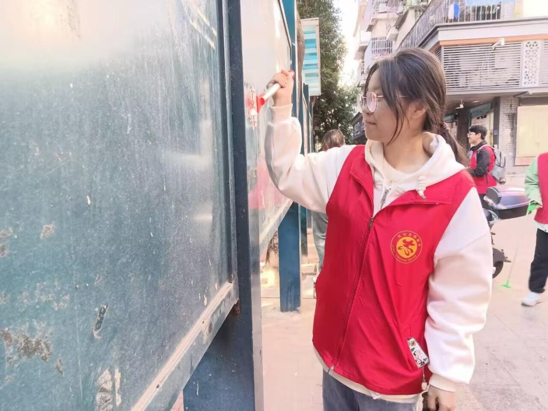 垃圾分類是生態(tài)文明建設(shè)的關(guān)鍵環(huán)節(jié)。走進社區(qū),你會看到身著鮮艷志愿服的同學(xué)們活躍在各個場景。有的同學(xué)手持清潔工具,仔細地清理著樓道內(nèi)的小廣告和灰塵,讓原本布滿斑駁的墻壁煥然一新。他們不放過任何一個角落,讓社區(qū)居民的生活環(huán)境更加整潔舒適。