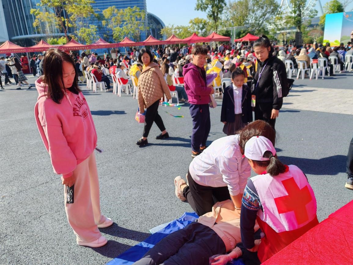急救知識是保障生命安全的重要防線。在社區(qū)廣場上,另一組志愿者們他們利用人體模型,現(xiàn)場演示心肺復(fù)蘇等常用急救技能的操作步驟,從按壓的位置、頻率、深度,到氣道的打開方式、異物的排出技巧等,都一一詳細解說并反復(fù)示范。居民們紛紛踴躍參與,在志愿者的指導(dǎo)下親身體驗急救操作,許多居民表示:“這些急救知識和技能以前只是聽說過,今天真正上手操作了才知道其中的要點和重要性,以后遇到突發(fā)情況心里就有底了。”