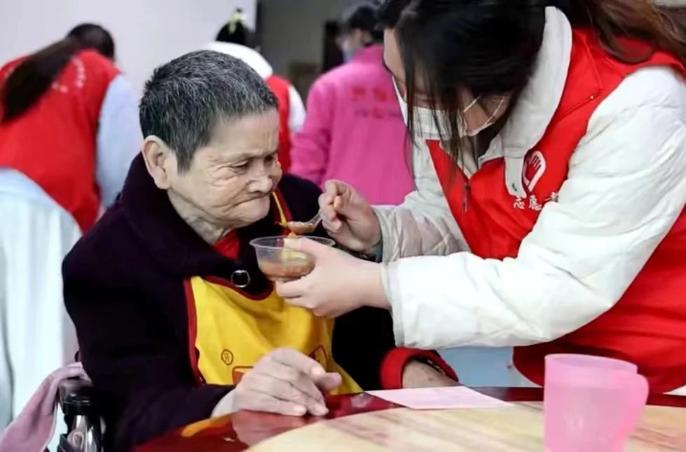 活動當(dāng)天,志愿者們早早來到養(yǎng)老院,現(xiàn)場洋溢著濃濃的節(jié)日氛圍。志愿者們不僅帶來精心準(zhǔn)備的節(jié)目,還與老人們交談,耐心傾聽他們的過往故事。距離表演開始還有一段時間,考慮到部分老人行動不便,志愿者們主動來到電梯口等待老人,將他們推往表演現(xiàn)場,老人們滿是期待,時不時和志愿者嘮嘮嗑,現(xiàn)場一片其樂融融。很快,精彩的節(jié)目正式開始,舞蹈志愿者們身著絢麗的服裝,用靈動的舞姿為老人們帶來了一場視覺盛宴;擅長唱歌的志愿者們一亮嗓,悠揚的歌聲便回蕩在養(yǎng)老院的每一個角落;志愿者們還為老人們帶來了有趣的手指操,在場的老人都很感興趣,老人們學(xué)得十分認(rèn)真,盡管有些動作不太標(biāo)準(zhǔn),但每個人都全情投入,臉上掛著專注又開心的笑容。表演結(jié)束,志愿者們端上熱氣騰騰的福粥送到老人的手中。對于一些身體不便的老人,志愿者們便親自喂粥。與此同時,志愿者們拿出精心準(zhǔn)備的賀卡遞到老人手中。賀卡上,繪著溫馨的圖案,寫滿了真摯的祝福,每一筆每一劃都飽含著對老人的敬愛。