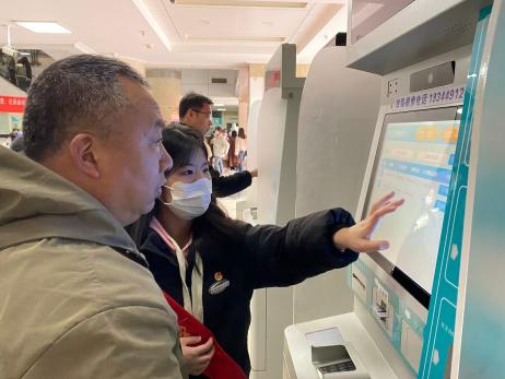 活動(dòng)現(xiàn)場(chǎng),志愿者們化身為“雷鋒”,穿梭在人群中,為前來(lái)就醫(yī)的患者提供幫助。許多患者對(duì)醫(yī)保電子憑證機(jī)的使用感到陌生,因此志愿者們耐心細(xì)致,從打開(kāi)醫(yī)保電子憑證的第一步開(kāi)始,一步步演示如何在機(jī)器上掃碼完成掛號(hào)、繳費(fèi)等操作。他們用通俗易懂的語(yǔ)言,不厭其煩地講解,直到患者完全掌握。