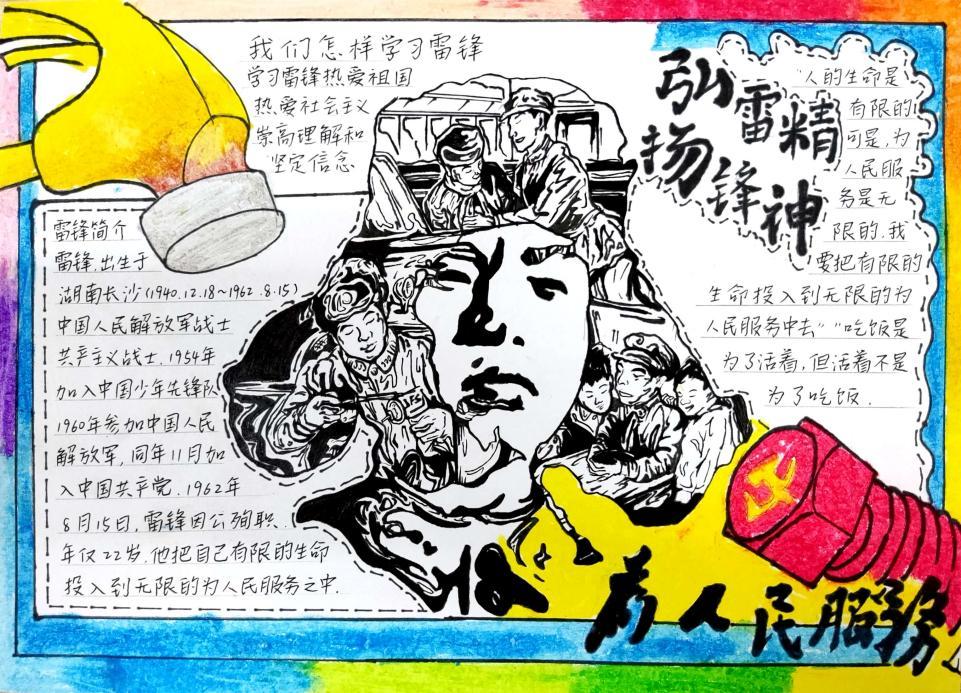 在這里,眾人拿起畫筆,通過繪制海報、手抄報、漫畫等形式,生動地講述雷鋒的感人故事。讓每一抹鮮艷的色彩、每一處巧妙的排版,都成為傳遞雷鋒精神的橋梁,讓那些溫暖人心的事跡,在作品中鮮活呈現(xiàn)。