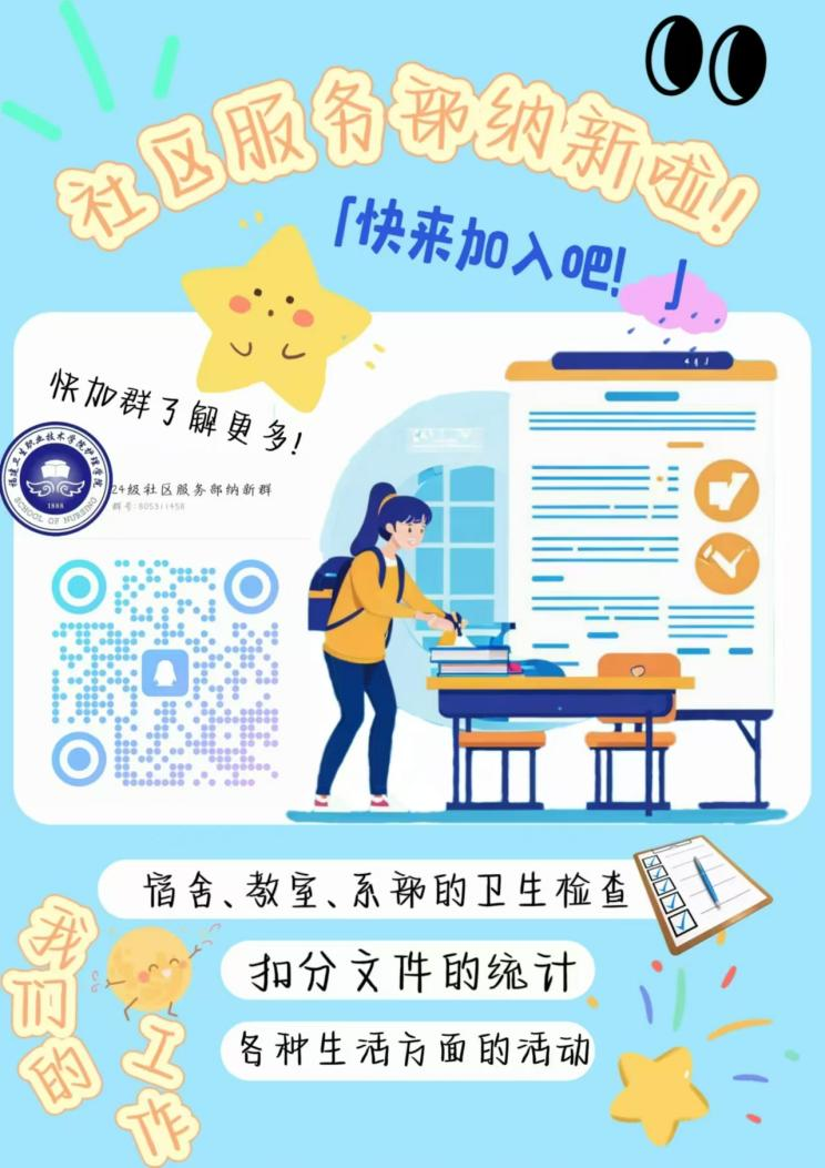 加入學(xué)生會,你將擁有更多的機會參與到學(xué)校的管理和建設(shè)中,為自己的大學(xué)生活增添一抹絢麗的色彩。不要再猶豫了!加入學(xué)生會活動多多,機會多多,各個部門覆蓋你校園學(xué)習(xí)、生活的方方面面,快來掃描二維碼加入我們納新群,多多了解我們吧!期待在9月9日晚上與你相遇!