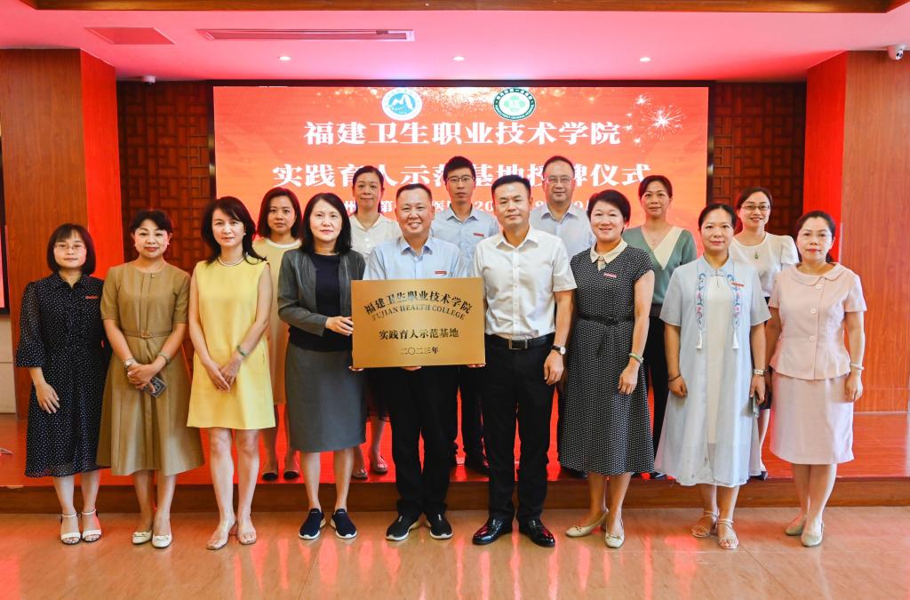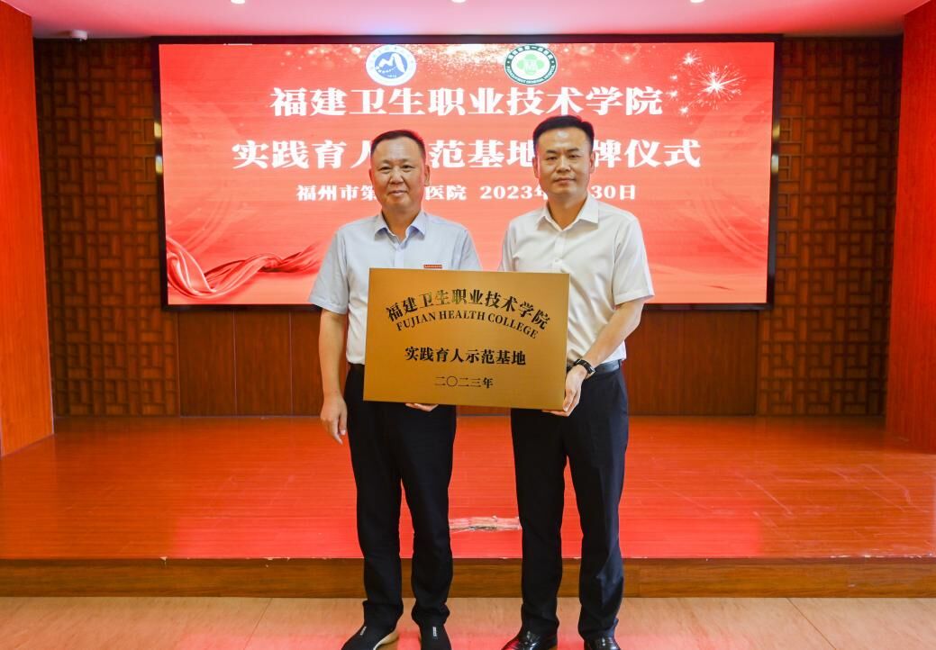 我校黨委書記曾武祈代表學(xué)校向福州市第一總醫(yī)院授予“福建衛(wèi)生職業(yè)技術(shù)學(xué)院實踐育人示范基地”牌匾。