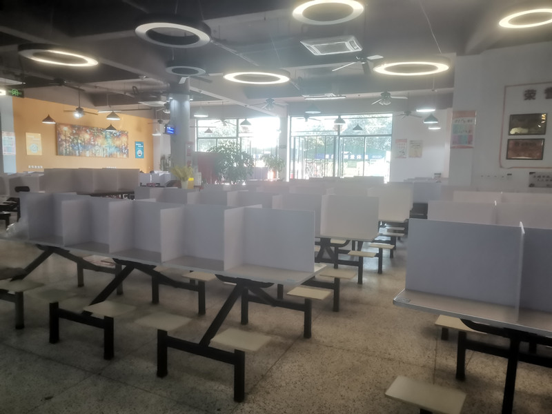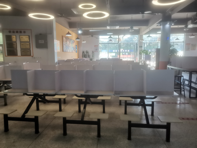 面對當(dāng)前疫情多點散發(fā)的嚴(yán)峻態(tài)勢,為進一步強化校園疫情防控,后勤管理處將食堂防疫舉措做實、做深、做細(xì)。除了要求所有進入食堂的人員佩戴口罩、保持安全距離,對食堂進行定期消殺外,3月12日,后勤管理處升級防控舉措,安排人員利用周末時間加急為三個食堂350多張餐桌安裝了PVC隔板,將每張餐桌分割成四個獨立“小包間”,阻斷堂食期間飛沫傳播,為師生安全衛(wèi)生用餐增添一道安全屏障。