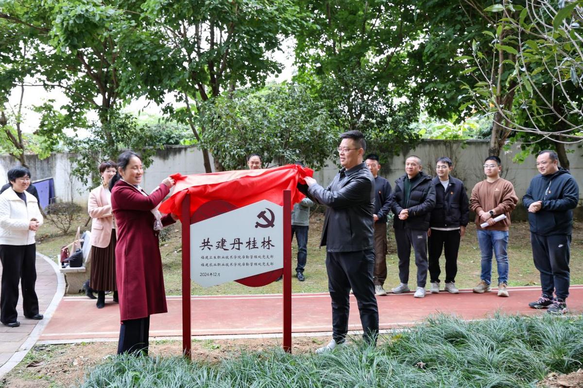 儀式上,我校后勤管理處黨支部書記王鈍銳簡要介紹了兩校后勤管理處黨支部開展支部結對共建的情況,以此為契機將福建農(nóng)業(yè)職業(yè)技術學院部分丹桂等苗木“移居”至我校校園步道以及各宿舍園區(qū),為我校校園景色增添新的色彩,隨后,院直機關黨總支書記艾松軍與福建農(nóng)業(yè)職業(yè)技術學院后勤管理處黨支部書記黃曉梅共同為支部共建“丹桂林”揭牌。
