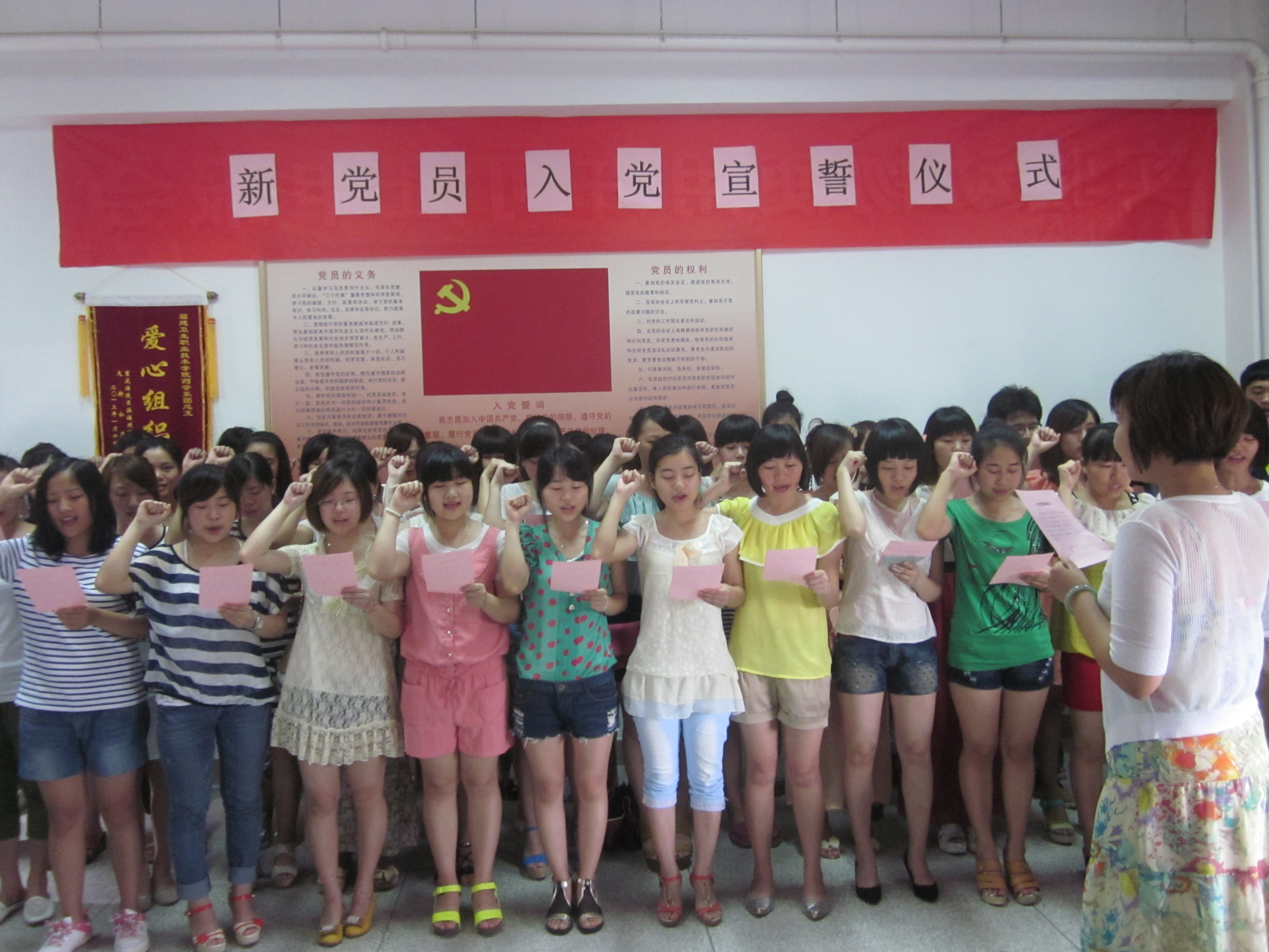 2013年6月25日下午,藥學(xué)系新黨員入黨宣誓儀式在系會(huì)議室隆重舉行。參加宣誓儀式的有系黨總支副書(shū)記蘇愛(ài)華老師、系總支委員何舒瀾老師、鄭煒老師、系黨總支第一黨支部書(shū)記葉雅沁以及全系預(yù)備黨員。