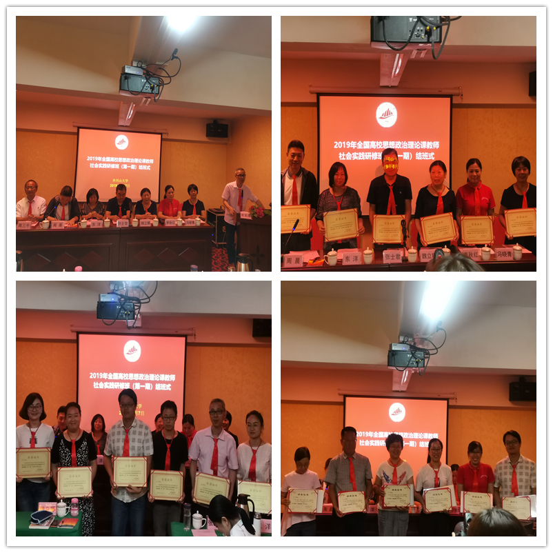 8月6日下午,2019全國高校思想政治理論課教師社會(huì)實(shí)踐研修班(第一期)順利完成全部教學(xué)培訓(xùn)任務(wù),在井岡山紫金賓館1號會(huì)議室舉行結(jié)班儀式。結(jié)業(yè)儀式上,胡濟(jì)林副教授代表我院發(fā)言,他主要從三個(gè)方面匯報(bào)學(xué)習(xí)心得體會(huì):第一,感受到井岡山老區(qū)人民的滿腔熱情;第二,身體和心靈得到了一次又一次洗禮;第三,要大力弘揚(yáng)井岡山精神,告訴我們在今后的工作中認(rèn)真學(xué)習(xí)毛主席調(diào)查研究的方法、理論創(chuàng)新的精神及無數(shù)犧牲革命烈士的大無畏精神。