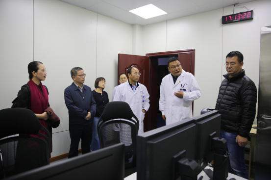 會(huì)后,醫(yī)院放射科主任、94屆“西藏班”校友旺堆帶領(lǐng)我院一行參觀科室。