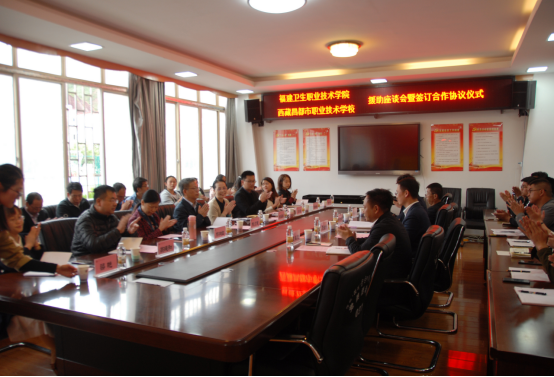 昌都市職業(yè)技術(shù)學(xué)校黨委書(shū)記余向輝主持儀式,代表學(xué)校向我院一行到來(lái)表示熱烈歡迎,并對(duì)此次成功簽約表達(dá)美好祝愿。昌都職校副校長(zhǎng)王磊在致辭中介紹學(xué)校近年在諸多方面取得的長(zhǎng)足發(fā)展,作為昌都市唯一的職業(yè)技術(shù)學(xué)校,肩負(fù)著為昌都市培養(yǎng)合格、優(yōu)秀醫(yī)護(hù)人才的重任,希望以此次座談會(huì)暨簽訂合作協(xié)議為契機(jī),搶抓機(jī)遇,通過(guò)多種形式加強(qiáng)交流合作,學(xué)習(xí)福建衛(wèi)生職業(yè)技術(shù)學(xué)院先進(jìn)的教育教學(xué)、管理理念,進(jìn)一步加強(qiáng)隊(duì)伍建設(shè)、專(zhuān)業(yè)建設(shè),擴(kuò)大辦學(xué)規(guī)模、提升辦學(xué)效益,再上新臺(tái)階。