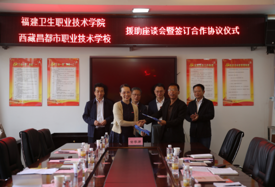 8月8日,福建衛(wèi)生職業(yè)技術(shù)學(xué)院副院長(zhǎng)陳貞健、副院長(zhǎng)鄭翠紅一行赴西藏昌都市職業(yè)技術(shù)學(xué)校舉行對(duì)口幫扶座談會(huì)暨簽訂合作協(xié)議儀式。昌都市教育局副局長(zhǎng)吳金明受邀出席,昌都職校黨委書(shū)記余向輝、副校長(zhǎng)王磊、副校長(zhǎng)袁名倫,各科室和各專(zhuān)業(yè)部負(fù)責(zé)人、醫(yī)護(hù)教師代表參加座談。