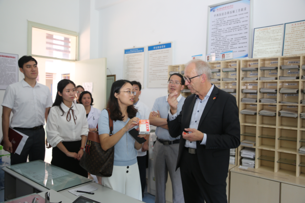 座談會(huì)上,雙方就醫(yī)養(yǎng)結(jié)合老年人護(hù)理、護(hù)理人員培訓(xùn)等方面進(jìn)行友好交流。會(huì)后,克里斯托弗·海尼克教授一行實(shí)地參觀了學(xué)院綜合門診部、人體科學(xué)館。
