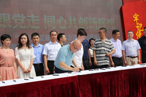 活動(dòng)現(xiàn)場,學(xué)院黨委曾武祈書記作為學(xué)院代表,同“薪火”黨建聯(lián)盟單位代表共同推桿,為本次活動(dòng)開幕。據(jù)悉,福州火車站片區(qū)“薪火”黨建聯(lián)盟旨在搭建平等交流、共商共議、資源共享的平臺(tái),形成區(qū)域統(tǒng)籌、條塊協(xié)同、上下聯(lián)動(dòng)、共建共享的城市基層黨建工作新格局。我院醫(yī)學(xué)技術(shù)系黨總支負(fù)責(zé)人邱滾忠副書記作為基層黨組織參建代表,在象征著傳承的卷軸上簽字。至此,醫(yī)學(xué)技術(shù)系黨總支正式成為福州火車站片區(qū)“薪火”黨建聯(lián)盟的一員。