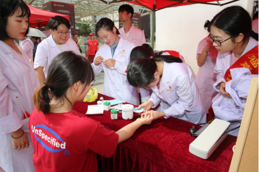 活動(dòng)當(dāng)天,醫(yī)學(xué)技術(shù)系3名學(xué)生代表參與了紅歌“快閃”活動(dòng)的拍攝,用朗朗的歌詞,揮舞的旗幟,共同表達(dá)了對黨對祖國的濃濃情意。醫(yī)學(xué)技術(shù)系師生還參與了服務(wù)八閩健康義診活動(dòng),提供了中醫(yī)問診、推拿拔罐、血糖血壓測量、養(yǎng)生茶包捐贈(zèng)等服務(wù),并協(xié)助省血液中心做好無償獻(xiàn)血引導(dǎo)和志愿服務(wù)。