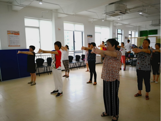 廈門筼筜街道養(yǎng)老照料中心老人們進(jìn)行肢體關(guān)節(jié)康復(fù)操鍛煉