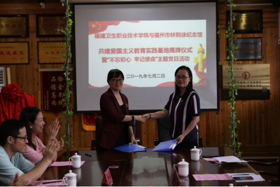 活動伊始,我院馬克思主義學(xué)院直屬黨支部書記、院長熊美蘭與林則徐紀念館黨支部副書記林虹,作為共建單位授權(quán)代表簽署共建愛國主義教育實踐基地協(xié)議書。接著,我院黨委書記曾武祈與林則徐紀念館黨支部書記、館長陳繼勇為共建實踐基地進行揭牌,并分別為共建實踐基地致辭。