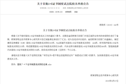 《關(guān)于在院校實(shí)施“學(xué)歷證書(shū)+若干職業(yè)技能等級(jí)證書(shū)”制度試點(diǎn)方案》是教育部為貫徹《國(guó)家職業(yè)教育改革實(shí)施方案》,推進(jìn)新時(shí)代職業(yè)教育改革發(fā)展,把學(xué)歷證書(shū)與職業(yè)技能等級(jí)證書(shū)結(jié)合起來(lái)的方案,1+X證書(shū)制度體現(xiàn)了職業(yè)教育作為一種類型教育的重要特征,是落實(shí)立德樹(shù)人根本任務(wù)、完善職業(yè)教育和培訓(xùn)體系、深化產(chǎn)教融合校企合作的一項(xiàng)重要制度設(shè)計(jì)。通過(guò)執(zhí)行1+X制度,能顯著提高我院人才培養(yǎng)質(zhì)量,深化人才培養(yǎng)模式和評(píng)價(jià)模式改革,探索暢通技術(shù)技能人才成長(zhǎng)通道。