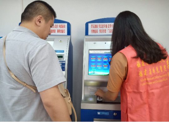 我院志愿者協(xié)助患者預(yù)約機(jī)預(yù)約掛號