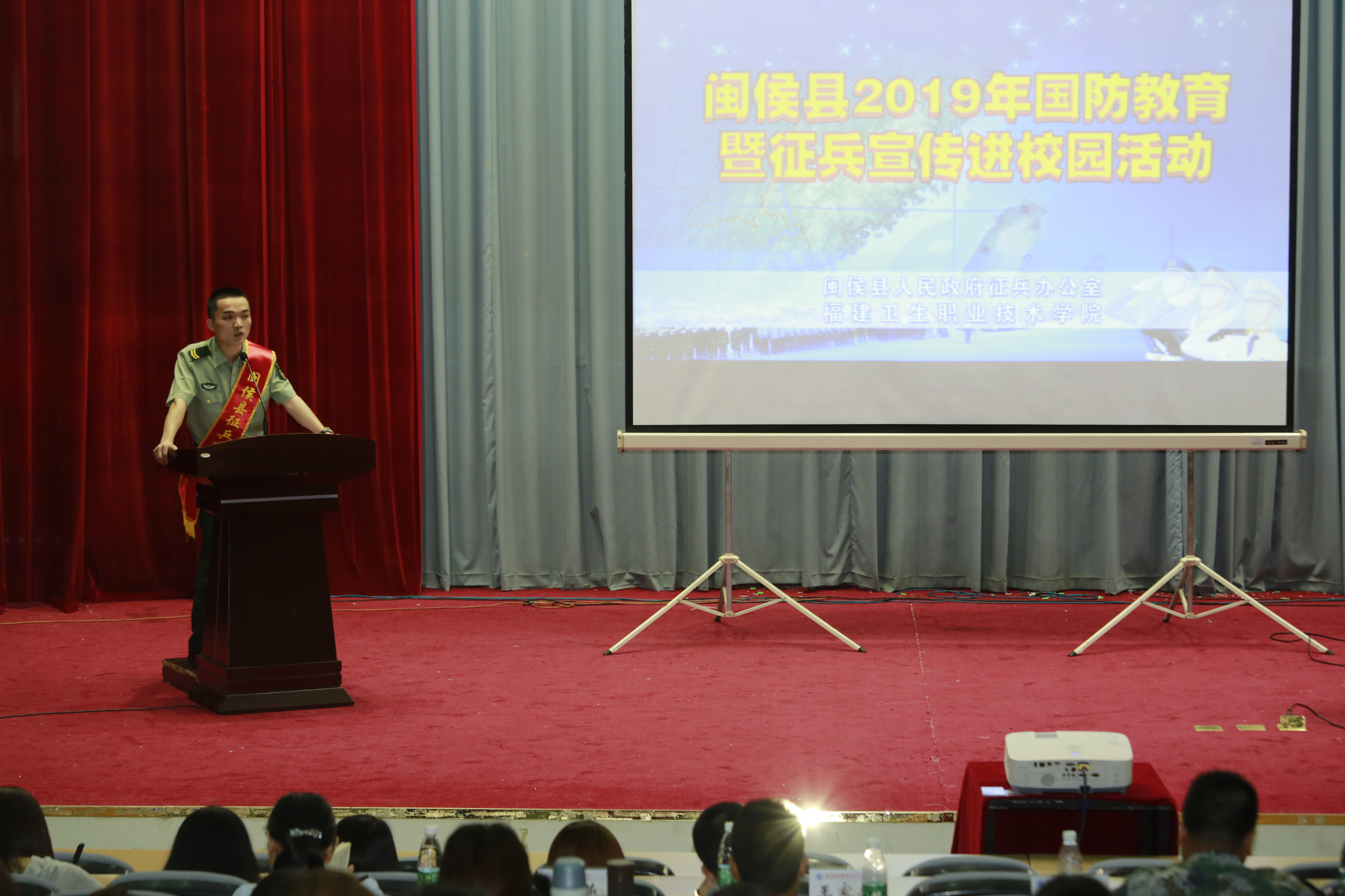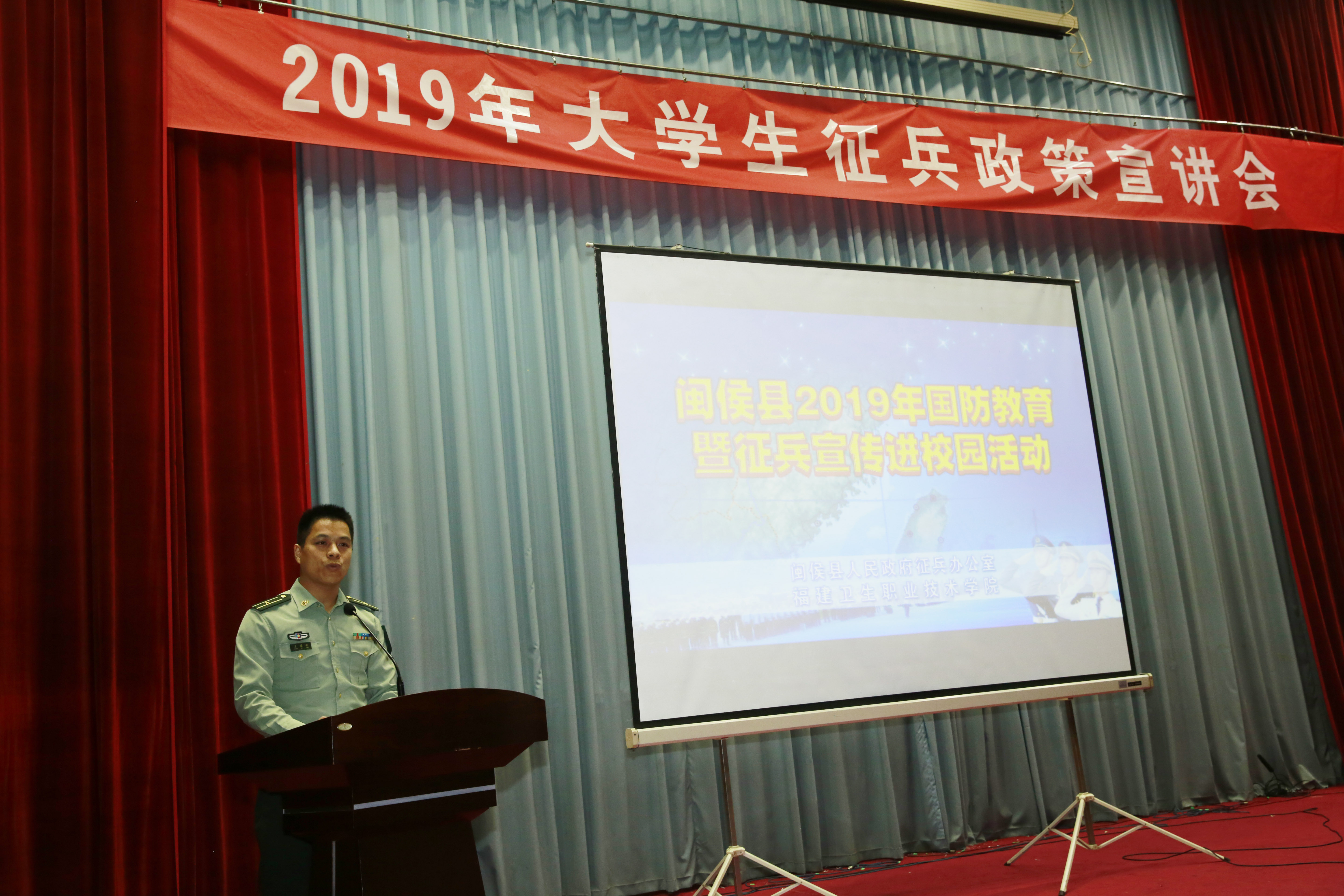 下午,大學(xué)生征兵政策宣講會(huì)在學(xué)術(shù)廳舉行。學(xué)院黨委副書記李美華、閩侯縣政工科長王家興、閩侯縣政工科干事吳春俊、荊溪鎮(zhèn)武裝部副部長李發(fā)慈、學(xué)院學(xué)工處副處長林燕出席,學(xué)工處、各系部征兵工作負(fù)責(zé)人以及學(xué)生代表共同參加了宣講會(huì)。