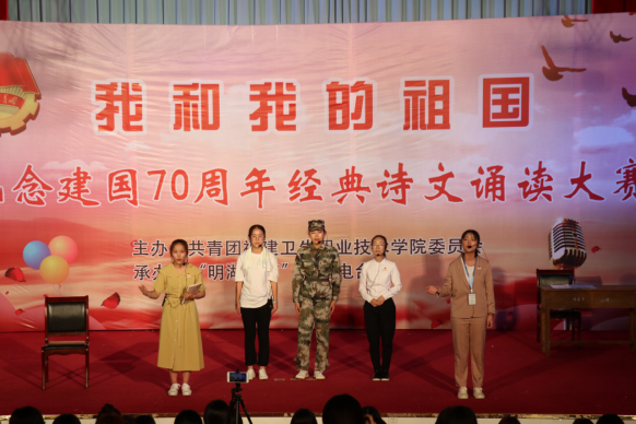 6月5日下午,我和我的祖國(guó)?慶祝新中國(guó)成立70周年“經(jīng)典詩(shī)文誦讀”比賽在學(xué)術(shù)廳成功舉辦。本次比賽作為第十五屆校園文化藝術(shù)節(jié)系列活動(dòng)之一,旨在青年學(xué)子中弘揚(yáng)紅色經(jīng)典、中華經(jīng)典詩(shī)詞,凝聚廣大青年歌頌經(jīng)典。院團(tuán)委委員宋秋瓊、藥學(xué)系團(tuán)總支副書記鄭衛(wèi)敏、護(hù)理系團(tuán)總支副書記張龍、醫(yī)學(xué)技術(shù)系團(tuán)總支副書記陳念文、臨床醫(yī)學(xué)系團(tuán)總支副書記陳清清、管理系團(tuán)總支書記馮瑞華、馬克思主義學(xué)院徐舒寧擔(dān)任本次比賽的評(píng)委。