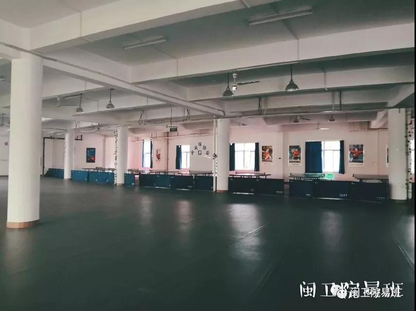 明湖二樓有很多張乒乓球桌、跑步機以及各種健身器材,是閩衛(wèi)院學生課余時間健身的好地方。