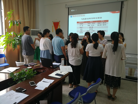 隨后,馬院全體教師在師德承諾書做出了鄭重的許諾,新入職教師面對黨旗進(jìn)行了莊嚴(yán)的宣誓。為促進(jìn)新教師更好成長,馬院精心遴選了教學(xué)和科研工作經(jīng)驗(yàn)豐富的教師作為導(dǎo)師幫扶指導(dǎo)新教師,現(xiàn)場舉行了簡單而隆重的拜師儀式,致力完成1年內(nèi)的“5個(gè)一”成長計(jì)劃,即至少精上一門主干課、聽一門課、開一次馬院公開課、參與一項(xiàng)課題、撰寫一篇工作心得;3年內(nèi)至少完成“5個(gè)一”成長計(jì)劃,即講好一門主干課、發(fā)表一篇C刊論文、作為主要完成人完成一項(xiàng)課題、參加一次校級及以上教學(xué)比賽、進(jìn)行一次學(xué)術(shù)交流,充分發(fā)揮成長導(dǎo)師的傳幫帶作用,全方位引領(lǐng)和幫助新上崗教師成長。隨后,根據(jù)黨和國家對思想政治理論課教師的要求,與會(huì)人員對我院思政課教師宣誓詞(征求意見稿)進(jìn)行熱烈探討。