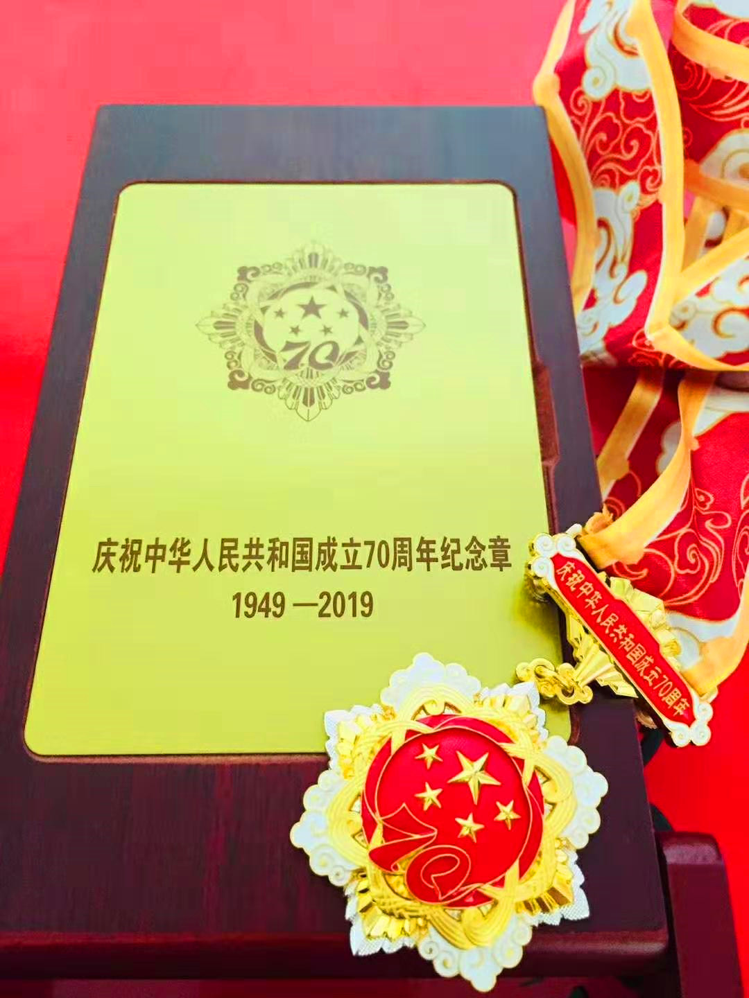 “慶祝中華人民共和國成立70周年”紀念章主要元素為五星、“70”飄帶、團錦結(jié)、如意祥云和光芒,主色調(diào)為紅色和金色。核心部分為五星,代表國家榮譽?!?0”飄帶象征中華人民共和國70年奮斗歷程。團錦結(jié)環(huán)繞在五星和“70”飄帶周圍,寓意全國各族人民大團結(jié),構(gòu)建人類命運共同體的愿景。章體外環(huán)以如意祥云、光芒構(gòu)成,象征人民對美好生活的向往,同時表達隆重慶祝中華人民共和國生日,禮贊國家富強、民族振興、人民幸福的輝煌成就,以及在70年輝煌奮斗成就的基礎(chǔ)上不忘初心、繼續(xù)前進的堅定決心。(人事處)