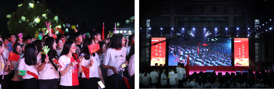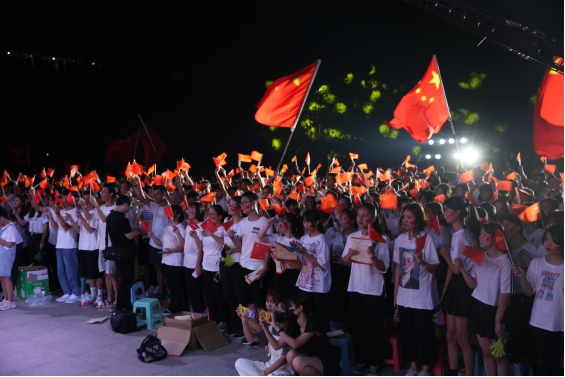 院關(guān)工委領(lǐng)導(dǎo)嚴(yán)肅主任也出席活動,并與5位演職人員上臺共同唱響《我和我的祖國》。在他們的帶動下,全場起立,800人共同揮舞手中的國旗,唱出心中對祖國的無限深情,歌聲響徹學(xué)院上空。