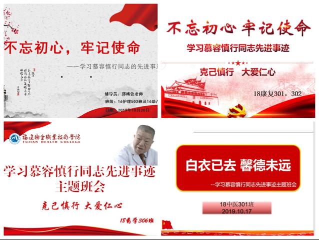 10月17日我校隆重舉行“不忘初心、牢記使命”主題教育之身邊先進(jìn)典型學(xué)習(xí)活動——慕容慎行同志先進(jìn)事跡報告會后,全體輔導(dǎo)員被慕容慎行同志作為人民好醫(yī)生、人民好教師的崇高品格和精神風(fēng)貌深深感染,及時積極將學(xué)習(xí)精神通過開展學(xué)習(xí)慕容慎行先進(jìn)事跡主題班會的形式傳達(dá)給學(xué)生們。在10月20日晚的主題班會課上,輔導(dǎo)員們根據(jù)報告會錄像資料和各自認(rèn)真準(zhǔn)備的PPT等班會資料,為學(xué)生們傳達(dá)“慕容”精神。