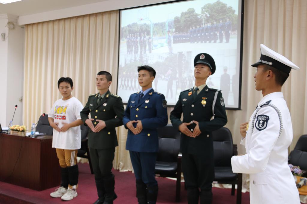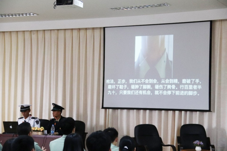 陳東生、涂百仲兩位老師作為預(yù)備役部隊(duì)方隊(duì)中的一員,在慶祝新中國(guó)成立70周年閱兵儀式中接受了黨和人民的檢閱。兩位老師同師生講述了在參加閱兵典禮過程中的各種酸甜苦辣。閱兵村極其嚴(yán)格的集訓(xùn),破了腳繭、腫了腳踝和胯骨、天安門前的96米要踢出128步,用時(shí)1分04秒的高標(biāo)準(zhǔn)和超40秒不眨眼,無不震撼了在場(chǎng)師生,掌聲陣陣。
