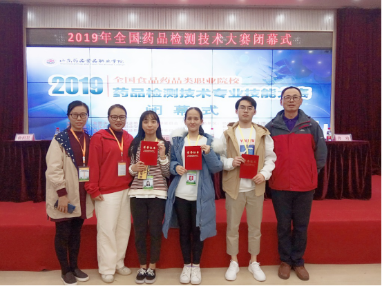 2019年全國(guó)食品藥品類職業(yè)院?!八幤窓z測(cè)技術(shù)”技能大賽于11月1至3日在山東藥品食品職業(yè)學(xué)院舉行。藥學(xué)系黃智偉、陳雪萍、吳婉婷三名同學(xué)組成的學(xué)生團(tuán)隊(duì)榮獲團(tuán)體二等獎(jiǎng)的好成績(jī)。