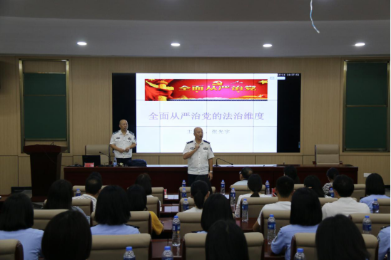 福建警察學院法律系吳文平書記熱烈歡迎我校臨床醫(yī)學系黨總支一行的到來,隨后雙方共同聆聽法律系張光宇教授講授的《全面從嚴治黨下的法治維度》。張教授從深刻理解“四個全面”的重要內(nèi)涵出發(fā),指出了全面從嚴治黨的重要性。深入理解“依法從嚴治黨”的基本邏輯,必須明晰其概念內(nèi)涵,分析其基本矛盾關系,實現(xiàn)黨規(guī)與法規(guī)一體建設,依法與從嚴相輔相成,治國與治黨同步推進,探求依法從嚴治黨的實現(xiàn)路徑,逐步建立與完善黨內(nèi)法治體系。