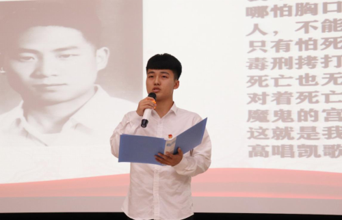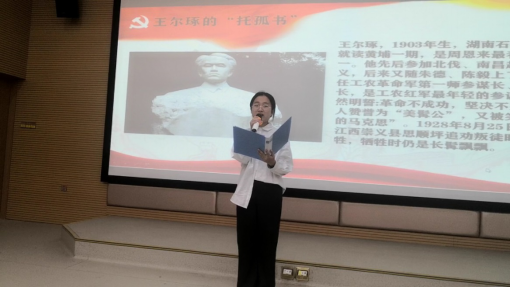 “一夜風云變,上海大屠殺。爾琢拔刀起,血誓效討伐。革命不成功,此生不剃須?!?/span> 主播魏雨馨演繹著《王爾琢的“托孤書”》,觸動臺下觀眾的心靈,讓同學們感受到一個有血有肉、至情至性的共產黨人形象。