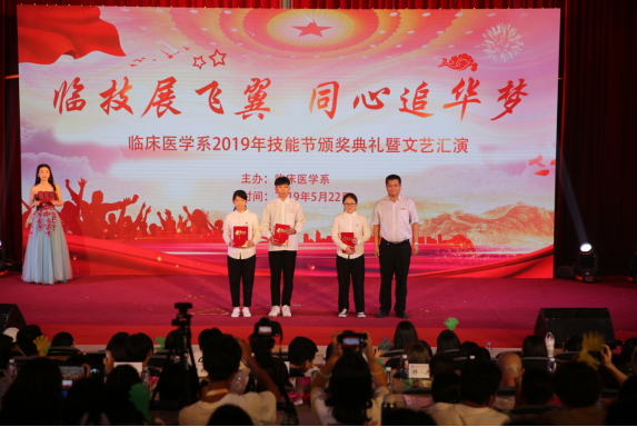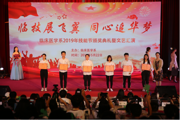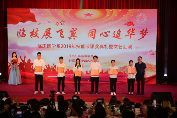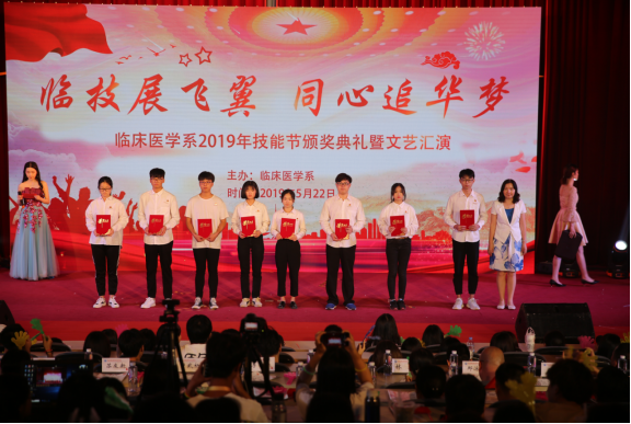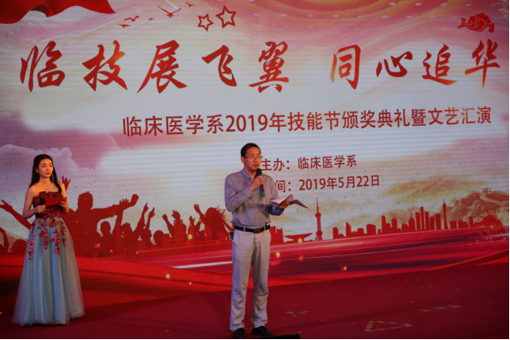 五月的鮮花勃勃盛開,紅色的旋律激情澎湃,臨床醫(yī)學(xué)系于2019年5月22日晚在學(xué)術(shù)廳舉辦以“臨技展飛翼,同心追華夢”為主題的技能節(jié)頒獎典禮暨文藝匯演。學(xué)院黨委曾武祈書記、蘇友新院長、李美華副書記、黃銘珊副院長、鄭翠紅副院長等院領(lǐng)導(dǎo)出席了本次晚會,團(tuán)委、學(xué)工處、各系黨團(tuán)總支負(fù)責(zé)人、臨床醫(yī)學(xué)系師生共計(jì)400余人參加晚會。